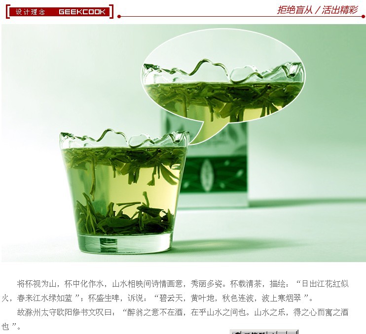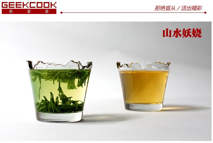 The cup as a mountain, a cup into the water, landscape matched between a quality of poetry or painting,beautiful scene. Cup loading of tea, Description: "sunrise river spends red Sihuo, such as blue green spring water";Cup draft, complained: "Pik Wan days, yellow leaves,autumn even wave, the wave Hanyan cui". The prefect of Chuzhou Ou Yangxiu paper sighed and said: "to have ulterior motives., between landscape care. Landscape of the music, the heart and put the wine".Note: this offer is a 2 price!