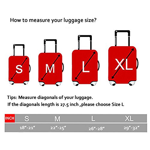 3.how to choose the cover for your suitcase? Answer: 4 Size available - Size S, Size M, Size L,Size XL,which will fits the luggage 18 - 32 inch;S (Suitable for 18 - 21 inch luggage),M (Suitable for 22 - 25 inch luggage),L (Suitable for 26 - 28 inch luggage),XL(Suitable for 29 - 32 inch luggage),If your luggage is hard shell style,please order a bigger size
