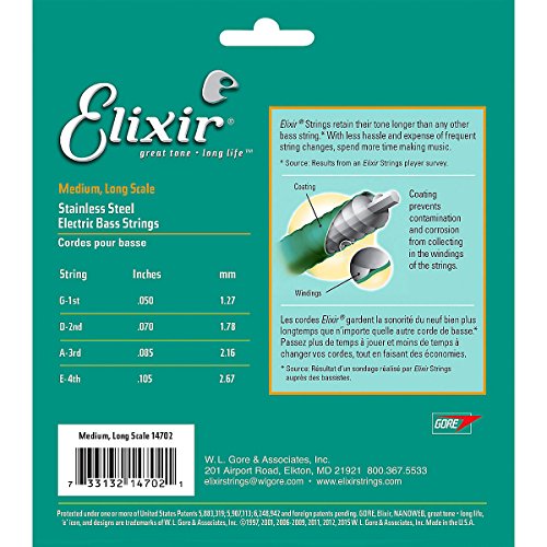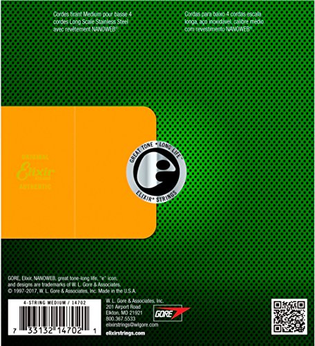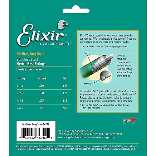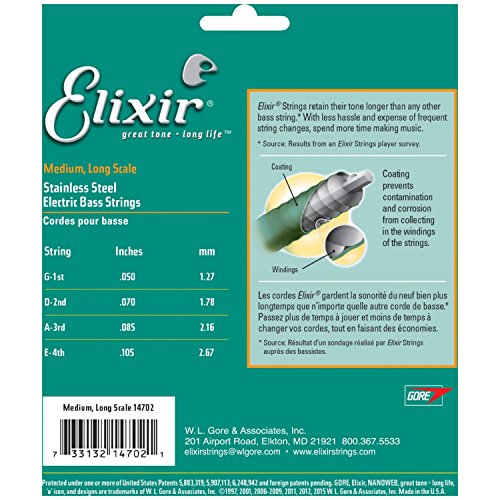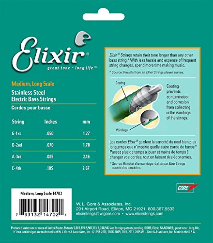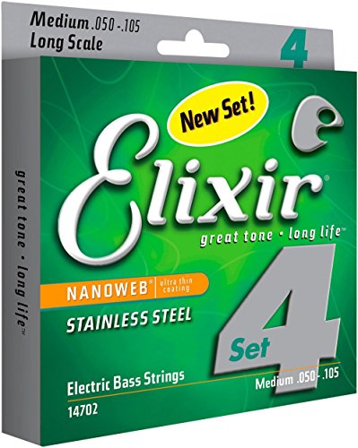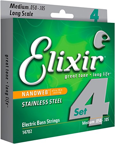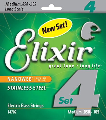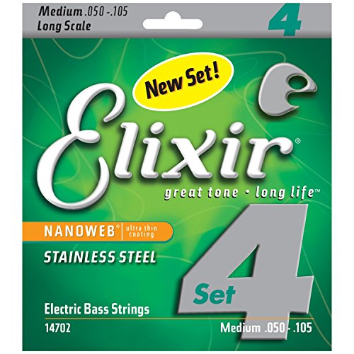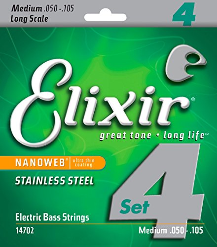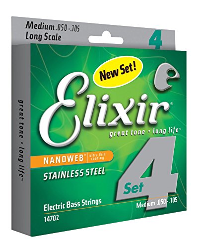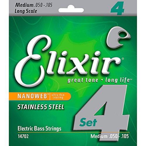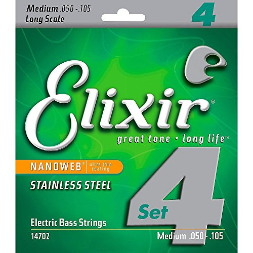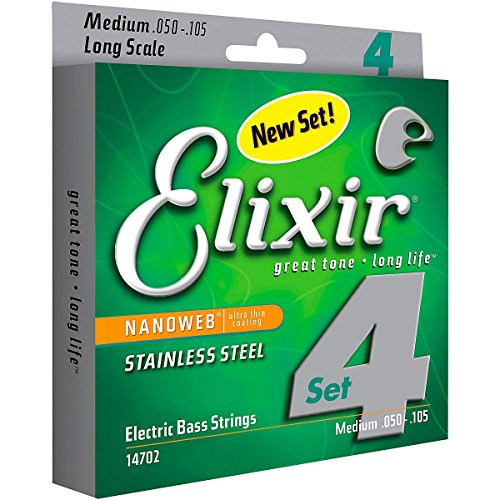 Studio : W.L. Gore Associates (Elixir Strings) Publisher : W.L. Gore Associates (Elixir Strings) Binding : Electronics Product Description Elixir Stainless Steel Bass Strings with NANOWEB Coating offer an enhanced grip(compared to original NANOWEB Coating) and deliver a bright tone while retaining the deep lows. These coated bass strings provide consistent performance from gig to gig and the extended tone life players expect from Elixir Strings. Elixir Strings is the only brand to coat the entire string, protecting not only the outer string surface, but also the gaps between the windings. Elixir Strings with NANOWEB Coating retain their tone longer than any other bass string, uncoated or coated (Elixir Strings player survey). New Set! 4-String Medium, Long Scale 050 070 085 105. Gauges Available Include: 4-String Light, Long Scale 045 065 080 100, 4-String Light/Medium, Long Scale 045 065 085 105. Elixir Strings Stainless Steel Bass are available as single strings in a range of gauges. 0
