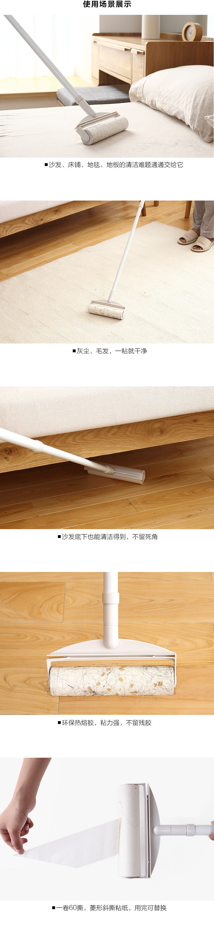 加长可撕式粘毛器灰尘毛发滚筒地毯清洁伸缩粘尘拖把