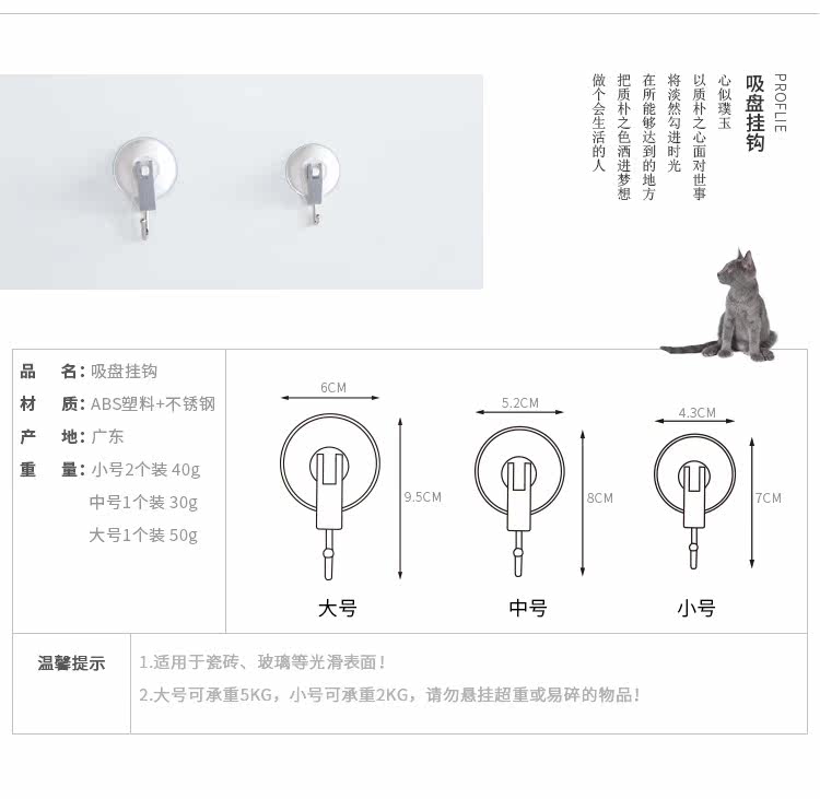 吸盘挂钩强力真空不锈钢挂钩防水免钉无痕吸附式挂钩
