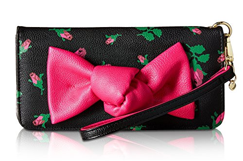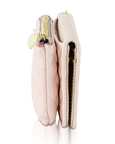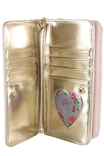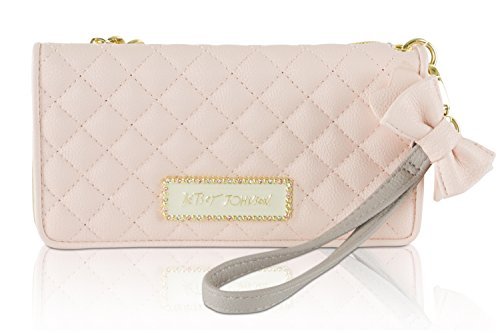 For the perfect blend of fashion and function, get the stylish Betsey Johnson Wristlet Wallet. Its constructed Quilted signature pvc exterior and finished with Betsey logo, The wallet features front flapover with a 7 Credit Card Slots, 2 Bill slots, Id Window and back zippered pocket, The detachable wristlet strap offers security while wearing.Feature