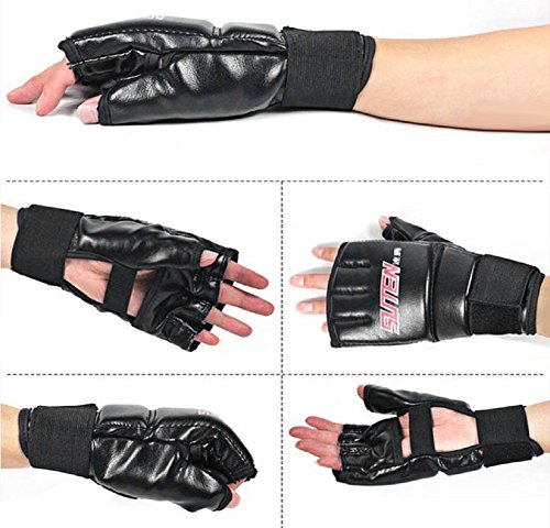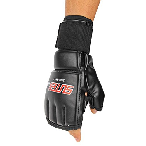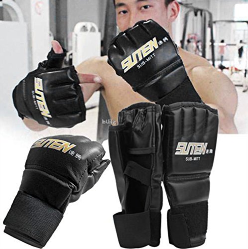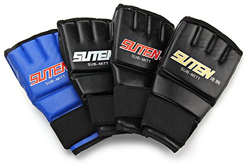 Studio : Kagogo Publisher : Kagogo Binding : Misc. Product Description 100% Brand New. Material: Leather Colors: BlackGold, BlackWhite, BlackRed, BlueRed. Length: 22cm/8.7'(Approx) Width:12cm/4.6'(Approx) New Foam Technology maximizes your grip and punching power while providing increased cushioning and support. Use Made of leather Gel Shock Padding Long Strap with velcro closure for better and secure wrist support. Conforms to the natural shape of the fist for comfortable training; complete with hook-and-loop wrist closure. The perfect design can helps regulate hand temperature. Unique gauze can keep hands dry, comfortable without odour. Package Content: 1 x Sparring Gloves 0