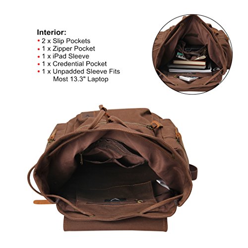 Functional Travel Backpack with practical Interior structure : 2 cell phone pockets,1 zipper pocket, iPad sleeve, credential pocket, Laptop Backpack with unpadded sleeve fits most 13 inch laptop or tablets