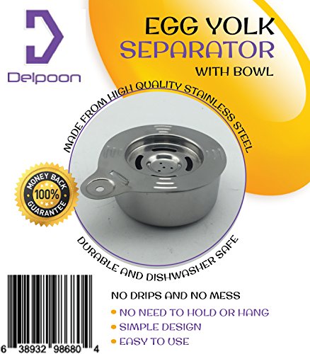 Delpoon Egg Yolk Separator With Bowl - Made From High Quality Stainless Steel, Durable and Dishwasher Safe Egg Whites Separator Tool