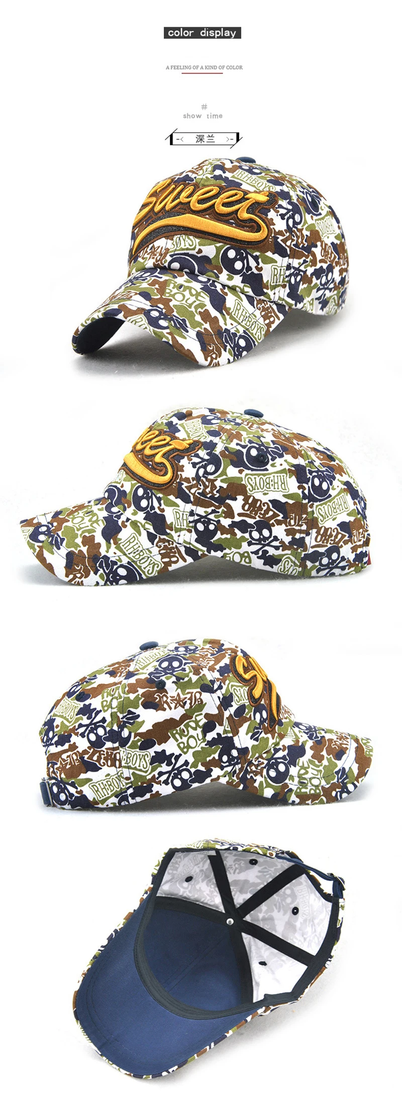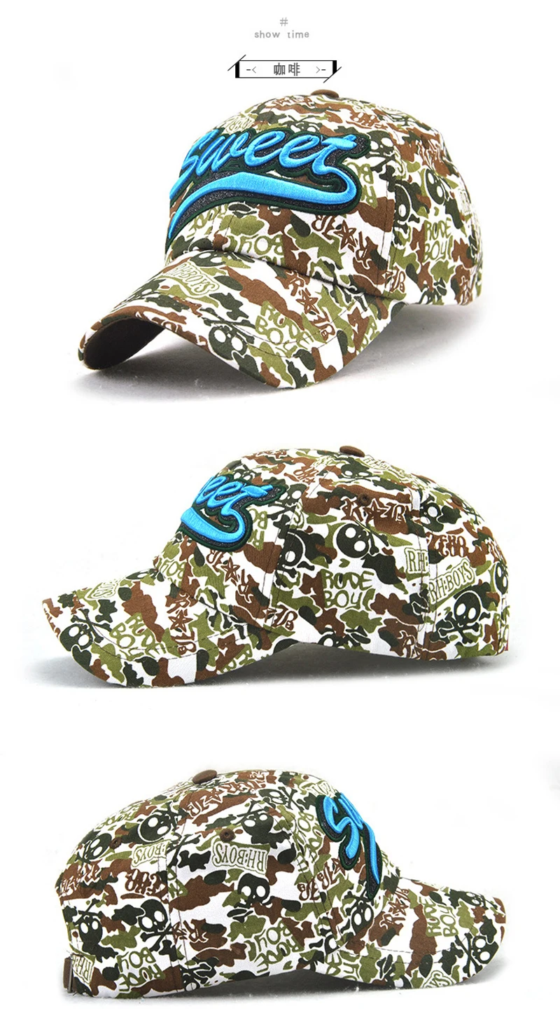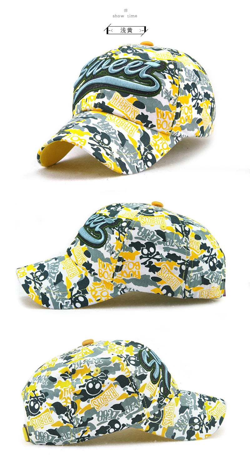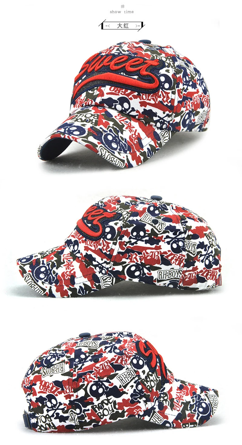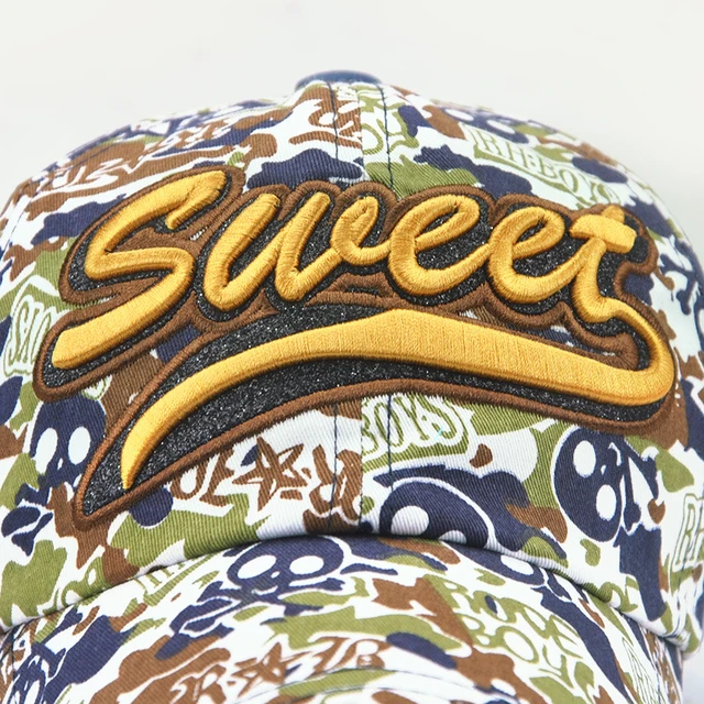 | [해외]면 남녀 자수 편지 달콤한 연인 야구 모자 낙서 카모 캡 여성 야외 모자 캐주얼 힙합 모자 |