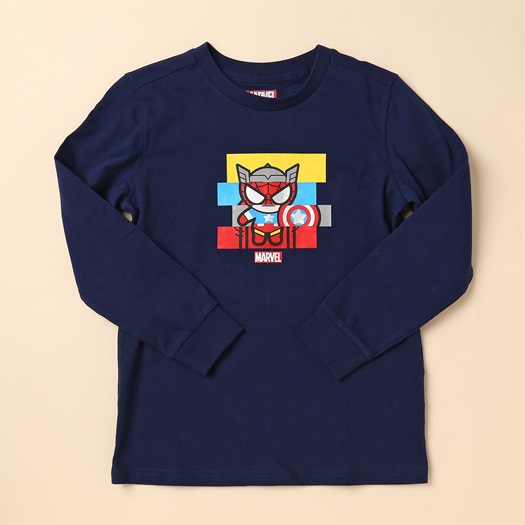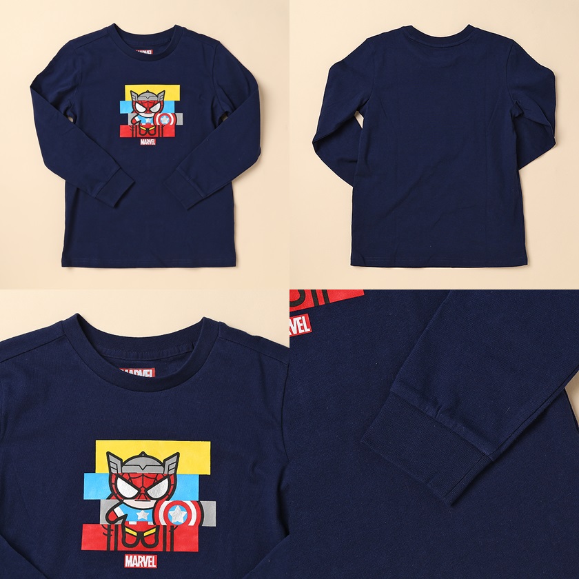 -키즈_공용 마블 콜라보 긴팔 싱글 티셔츠입니다.
