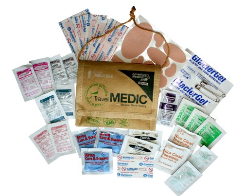 -. Feature : Prepare for illness and injury while traveling to new environments with unknown risks. / Stash this kit in a carry-on bag or day pack for quick access to basic first aid supplies. / This kit includes a pocket for blister relief, wound cleaning, and dressing supplies, and another for medications to treat common problems while traveling, including stomach ailments. / Apply the included die-cut Moleskin pads to prevent blisters and GlacierGel hydrogel bandages to soothe existing ones. / This kit includes supplies for wounds and blisters, safety pins, and common medications for pain, inflammation, and common allergies in a durable, reusable, and lightweight pouch.