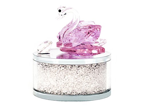 Pair of Pink Crystal Swans Ornament with Circular Frosted Glass Base By Haysoms