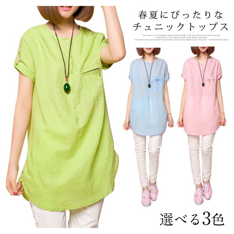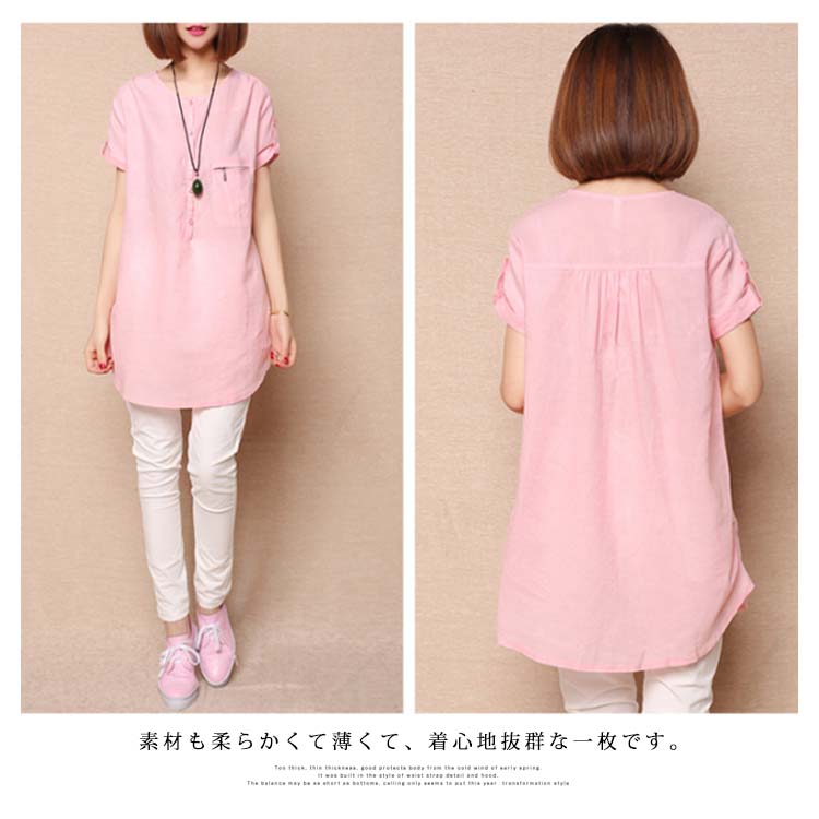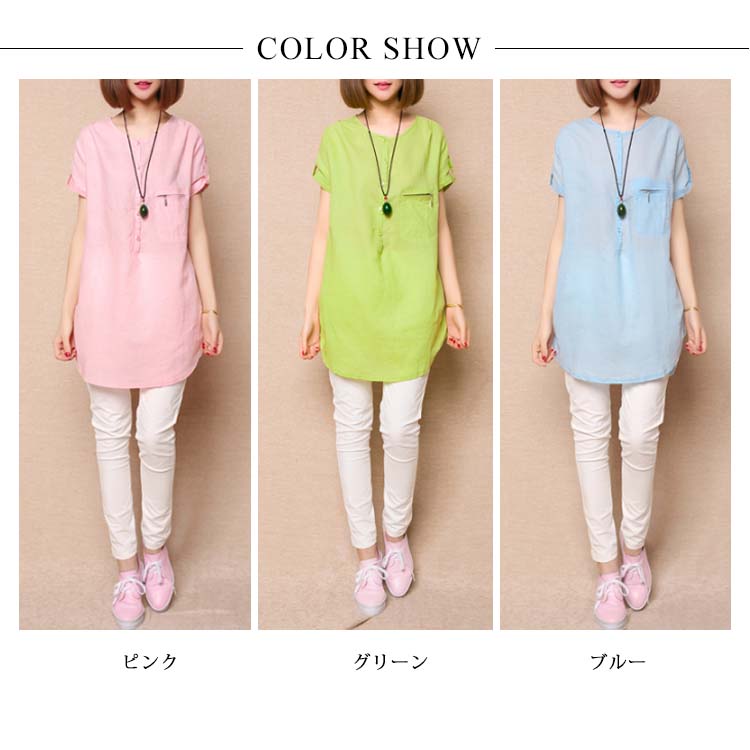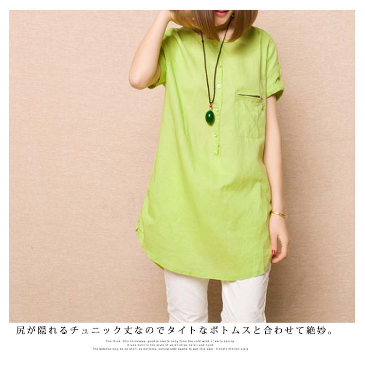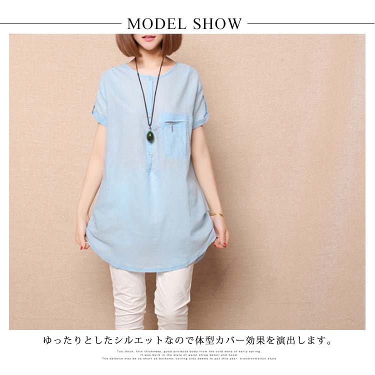 | 春夏にぴったりなチュニックトップス。ゆったりとしたシルエットなので体型カバー効果を演出します。尻が隠れるチュニック丈なのでタイトなボトムスと合わせて絶妙。素材も柔らかくて薄くて、着心地抜群な一枚です。 | |
