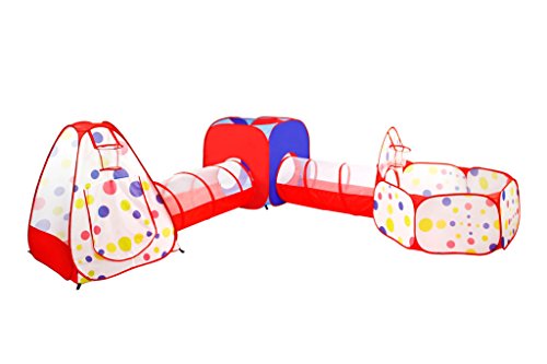Let your baby's imagination run wild with this perfect 3pc adventure play tent set. They will occupy themselves for hours at a time jumping, crawling, & playing hide-and-seek while creating memories that you will cherish forever. The tent, tunnel, & ball pit are folded separately & packaged inside a compact zipper storage case with handle. You can use them in multiple ways: what's inside the package? - 1 X triangular play tent: 40" height - 44" diagonal base width - 1 x tunnel: 42" length - 19" diameter - 1 x ball pit w/ hoop: 18" base height - 32" hoop height - 45" width - 1 x instructions you will give the kids an extremely fun toy that will keep them occupied for hours. You can now listen to a few extra hours of joy & laughter everyday while giving yourself some time to relax. .Feature