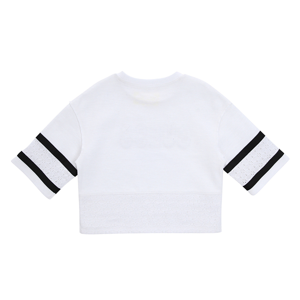 레이스 배색 티셔츠 5부 소매 기장으로 살짝 박시한 FIT의 티셔츠.