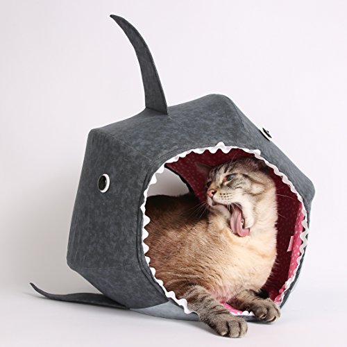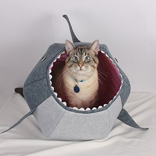 -. Binding : Misc. -. Brand : The Cat Ball -. Color : Grey -. Feature : Made in USA / All cotton fabrics with foam interior / Our original hexagonal cat bed design has two openings, one larger than the other / Fits cats up to about 18 pounds / Machine washable cat bed -. Label : The Cat Ball -. Manufacturer : The Cat Ball -. MPN : SE-SW-1 -. PackageQuantity : 1 -. PartNumber : SE-SW-1 -. ProductGroup : Pet Products -. ProductTypeName : PET_SUPPLIES -. Publisher : The Cat Ball -. Studio : The Cat Ball -. Title : Great White Shark Cat Ball Kitty Bed