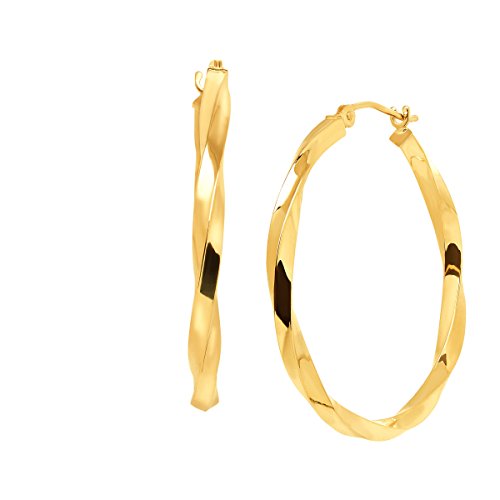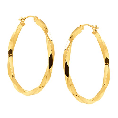Just Gold 30 mm Twisted Tube Hoop Earrings in 14K Gold