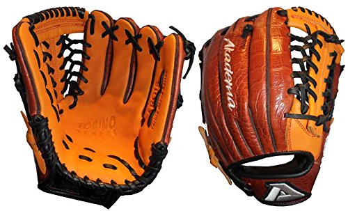 ReleaseDate : 2011-05-07 Studio : Akadema Publisher : Akadema Binding : Sports Product Description 11.5" pattern, modified trap web with open back and medium-deep pocket. Right or left hand throw. With a light tan palm and a chocolate brown shell, the Torino Series performs even better than it looks. Akadema's newest glove line features kip leather that enables the Torino Series to be 20% lighter, yet just as durable as US steerhide gloves. The Torino Series gloves break in quickly and are more durable than our competitors. 0