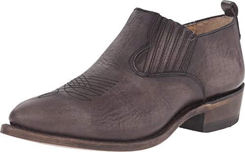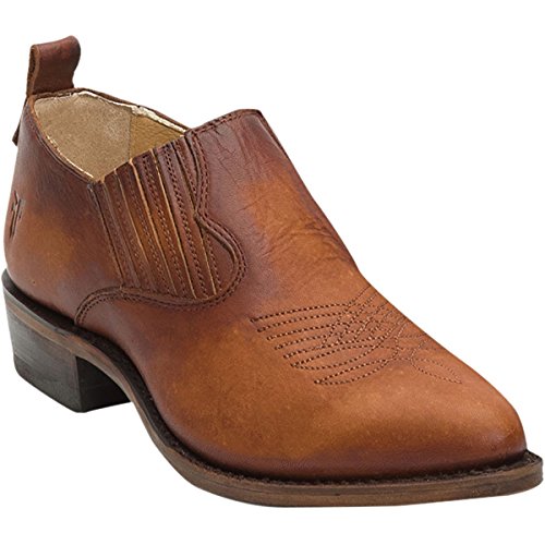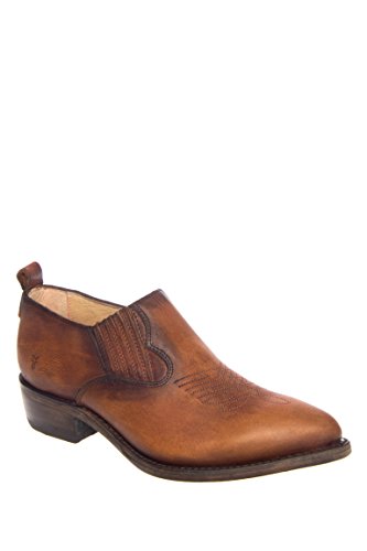 Product DescriptionThese low-shaft Frye booties channel western style, crafted in waxy, distressed leather and accented with tonal seaming. Elastic gore insets and a pull-tab allow for an easy, slip-on fit. Stacked heel. Synthetic sole.0