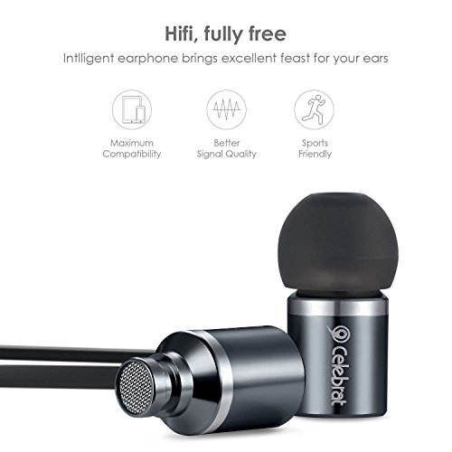 Celebrat C6 Earphones Headphones, High Definition, in-ear, Tangle Free, Noise Isolating with Microphone & 3.5mm Cable for iPhone, iPod, iPad, MP3 Players, Samsung Galaxy etc, Navy blue