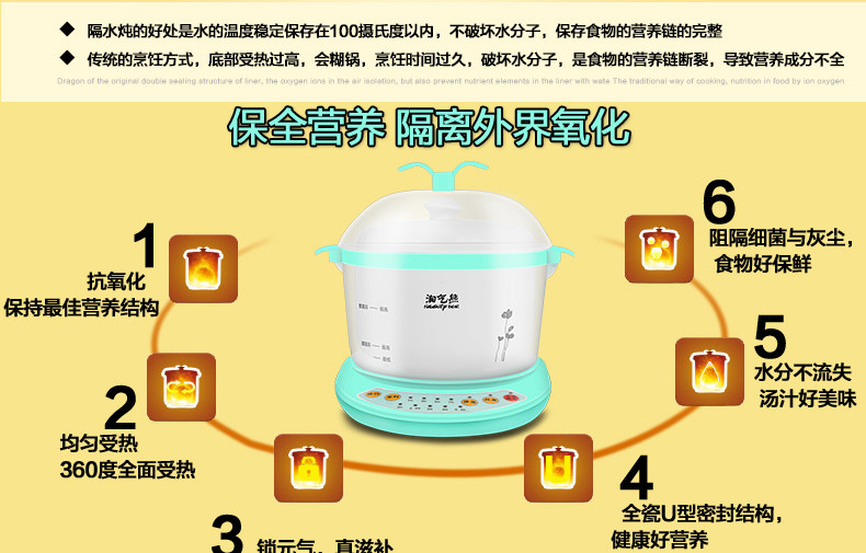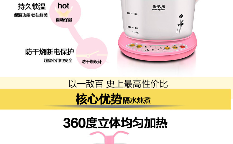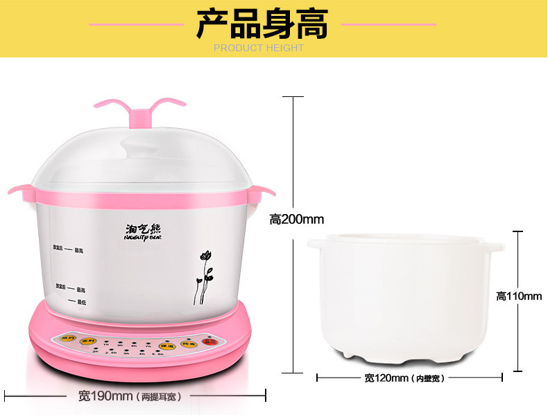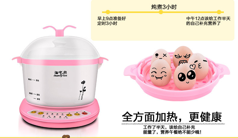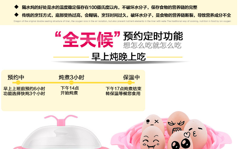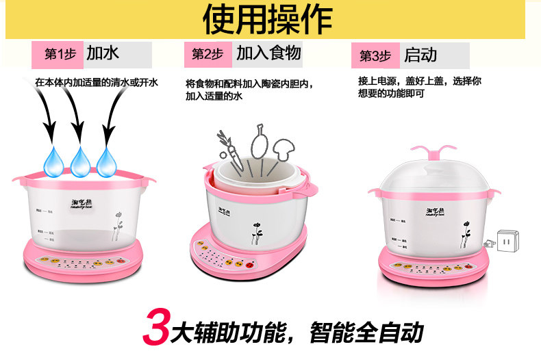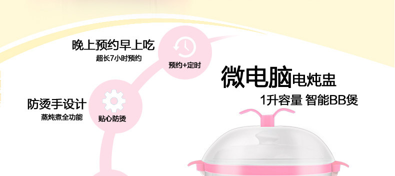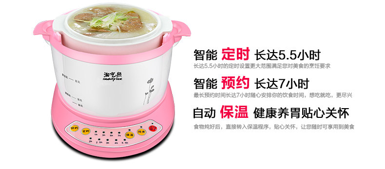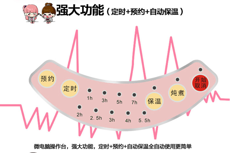 ?智能功能:预约,定时,保温。(比如预约3个小时,就是3个小时之后机器自动开始工作,定时3个小时,就是机器工作3个小时之后自动保温,预约和定时可以同时设定)