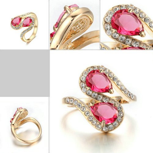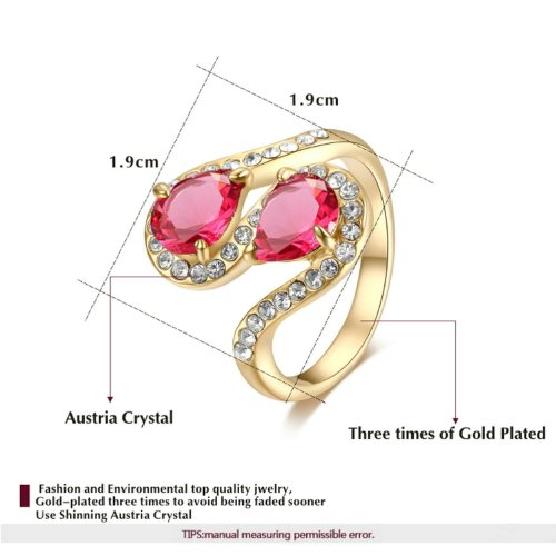 - Title : Yoursfs Dual Teardrop Ruby Shining Crystal Fashion 18K Rose Gold Plated Cocktail Ring