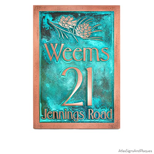 -. Title : Conifer Cone Address Plaque - 10.5x15 - Raised Copper Verdi Metal Coated Sign