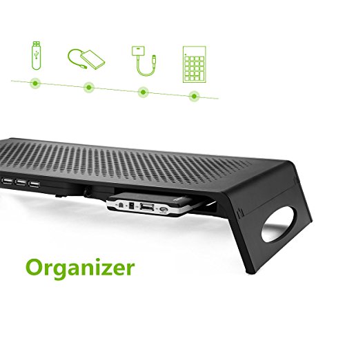 ➽Two Organizers : There are two small organizers on the right and left of the stand , you can store small items such as USB flash drive ,smart phone ;You can also put your keyboard or some books under the stand ,which can make your desk area neat ;