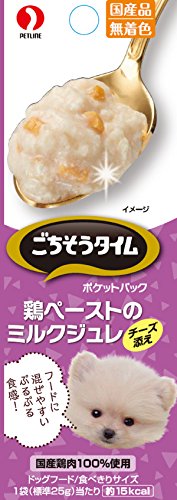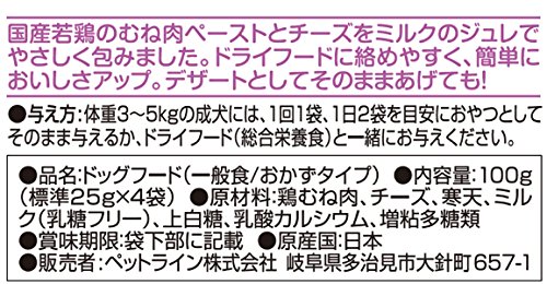 原材料:鶏むね肉、チーズ、寒天、ミルク(乳糖フリー)、上白糖、乳酸カルシウム、増粘多糖類