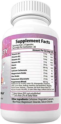 -. Title : Anti Anxiety - Stress Relief Formula - Stay Relaxed, Calm, Positive - Powerful Mood Support Supplement With Ashwagandha, St. John's Wort, B Vitamins, L-Theanine, 5-HTP, Gaba, Chamomile - 60 Count