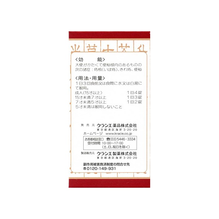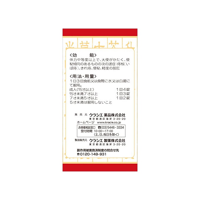 원본상품명: 【第2類品】乙字湯エキス錠クラシエ 180錠