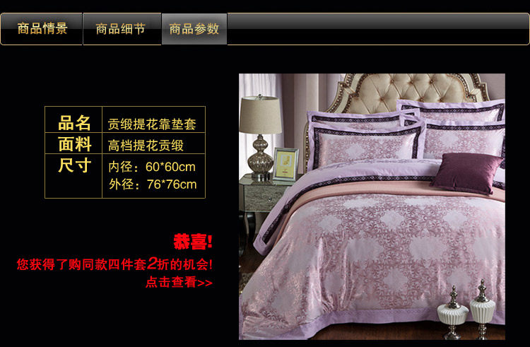 Material: A version (pillowcase front main body) 100% cotton excellent extra-satin jacquard process