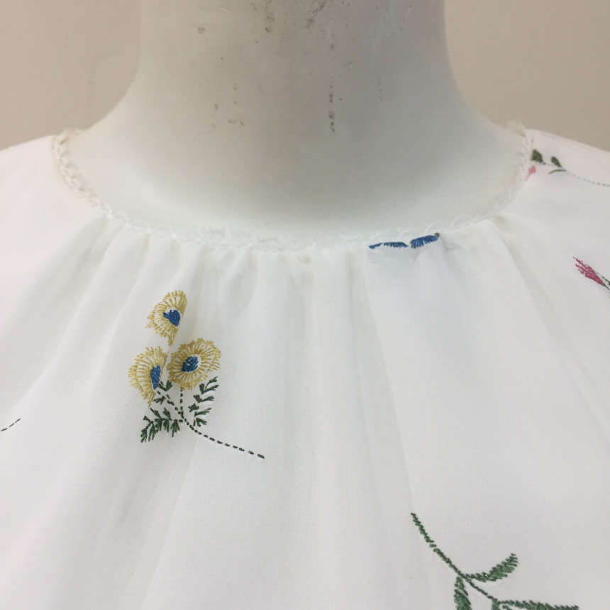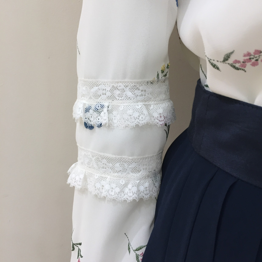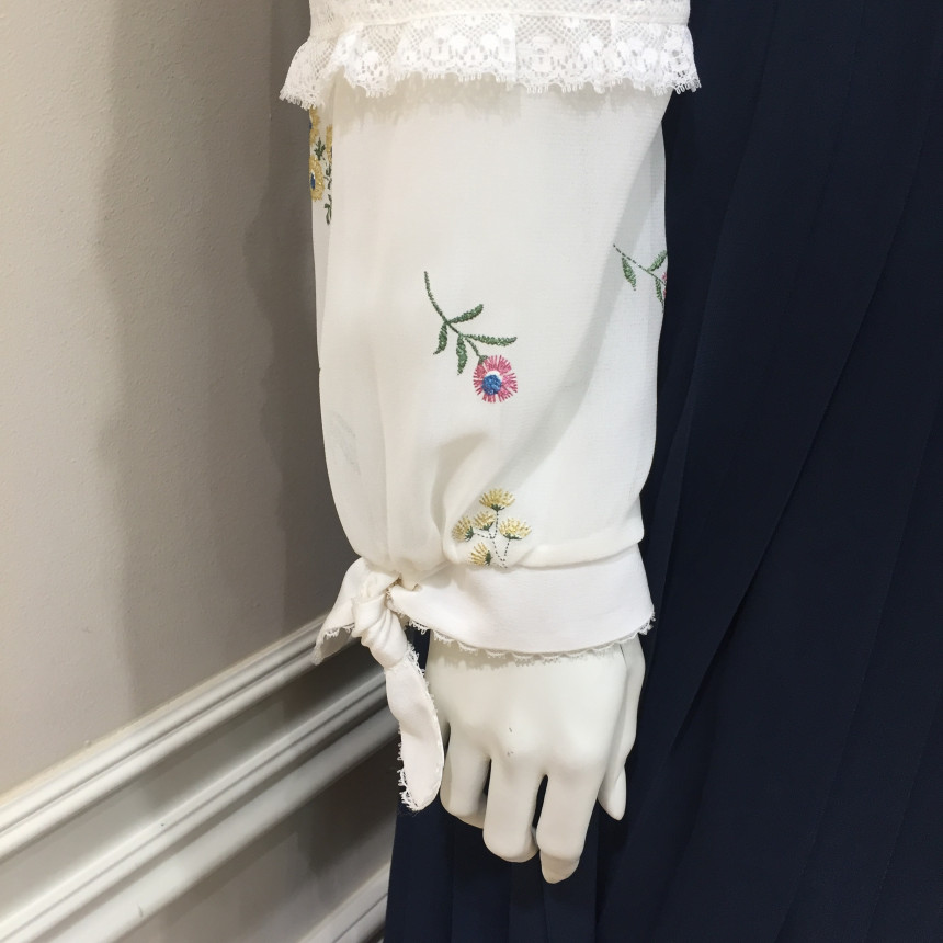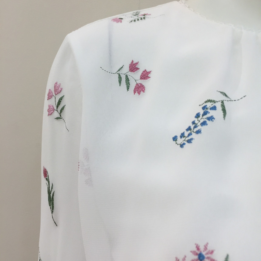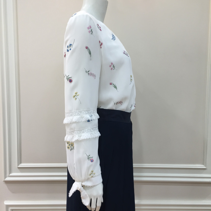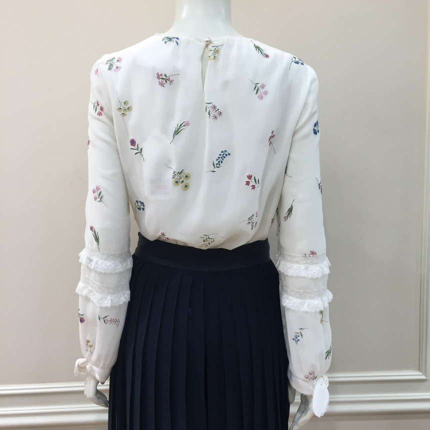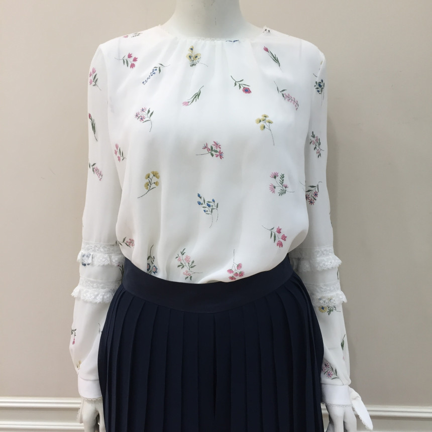플라워 자수가 잔잔하게 들어간 여성스러운 블라우스입니다.