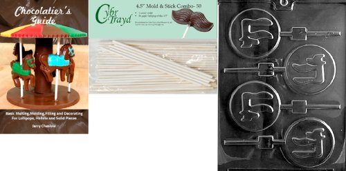 Cybrtrayd Chai Lolly Chocolate Candy Mold with 50 4.5-Inch Lollipop Sticks and Chocolatier's Guide