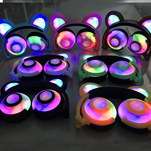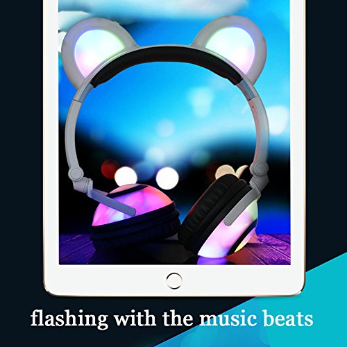 - ♫ 2017 HOT VERSION: Cute bear ear headphones,newest and best selling foldable headband computer headphone with soft headband. LED flash light up to 30+ hours. Adjustable Headband to fit different sized heads. Excellent sound quality with super bass stereo. Over-the-ear cushioning for noise reduction and a secure fit. On/Off switch located behind right “Bear ear”,right modes: on,blinking and off.