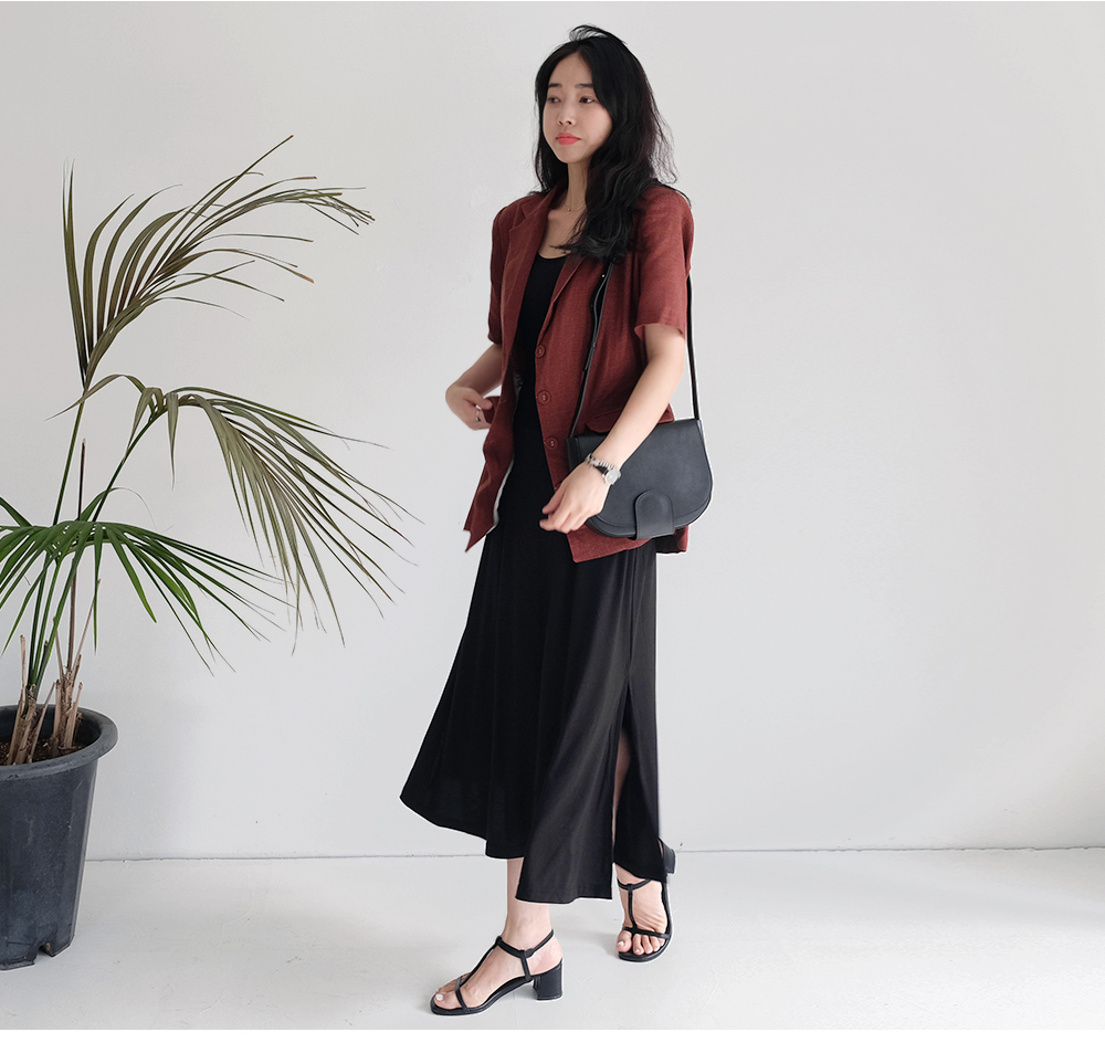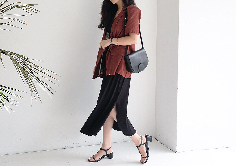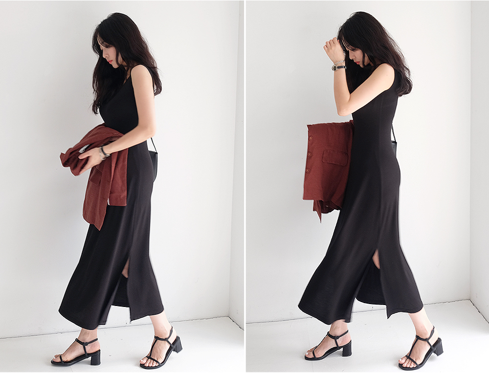 밑단 양쪽이 트여있어 활동성이 좋으며 허리라인을 잘 잡아주어