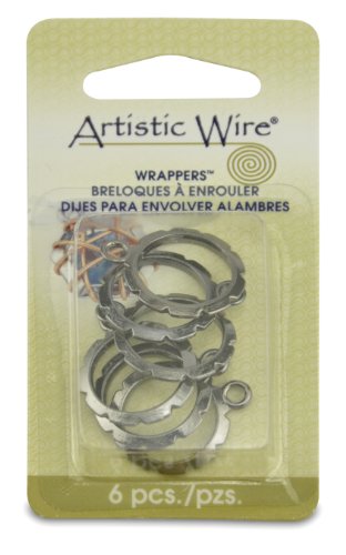 Artistic Wire, Wrapper 20-Millimeter Round Findings, Nickel Free Hematite, 6 Piece
