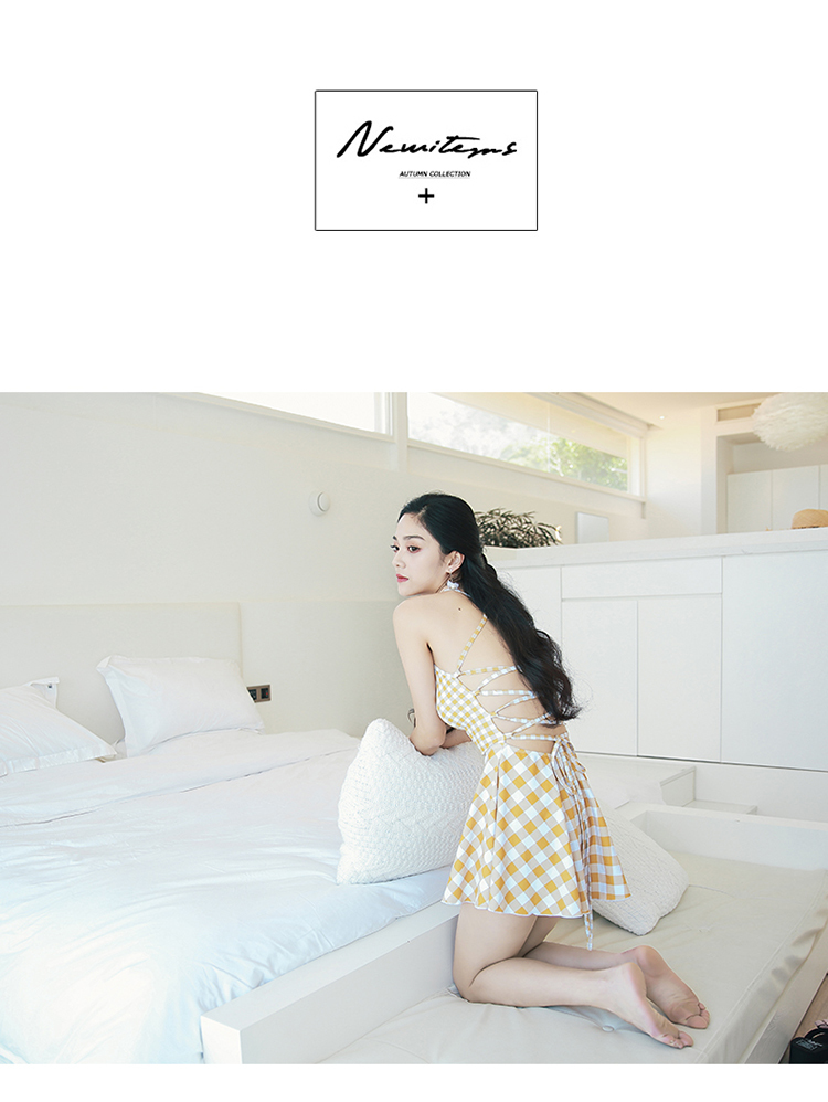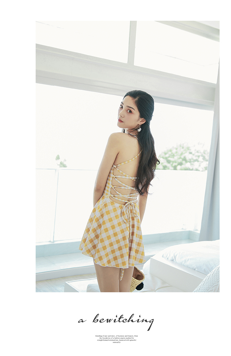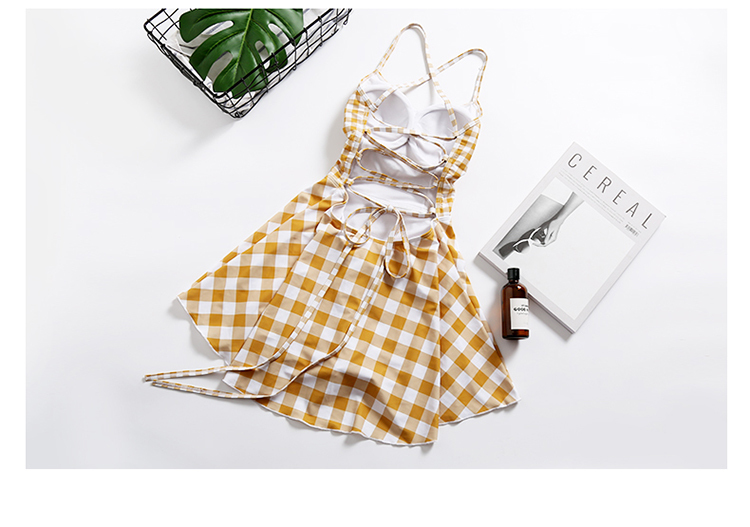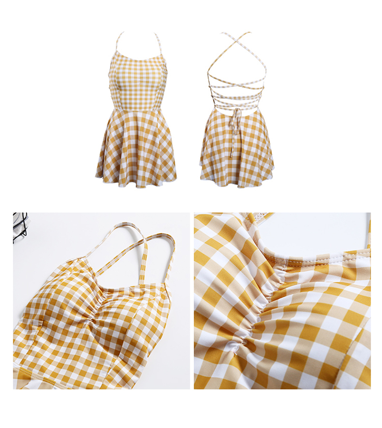 【関連キーワード】ギンガムチェック柄 ワンピース水着 ホルターネック 大人可愛い レディース 体型カバー