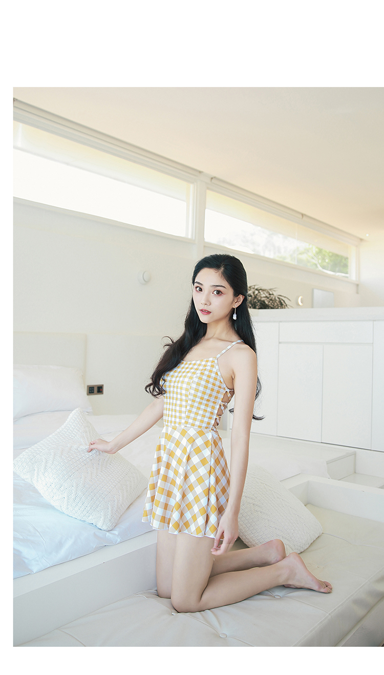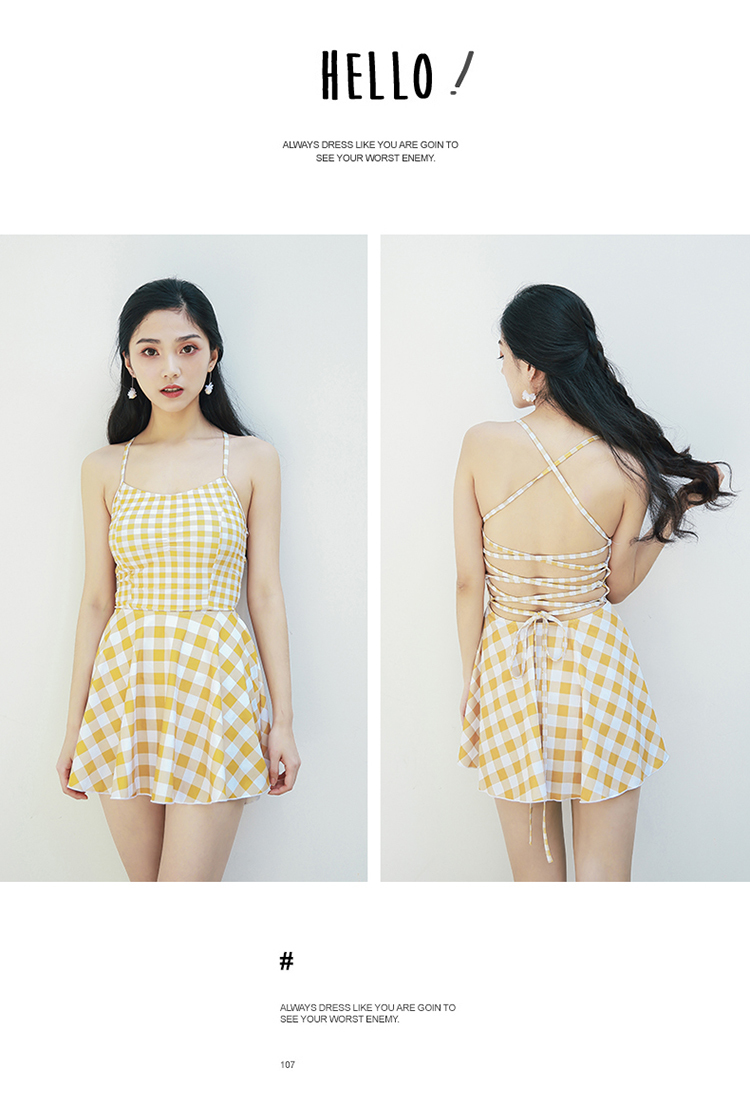 大人可愛いギンガムチェック柄のワンピース水着です。