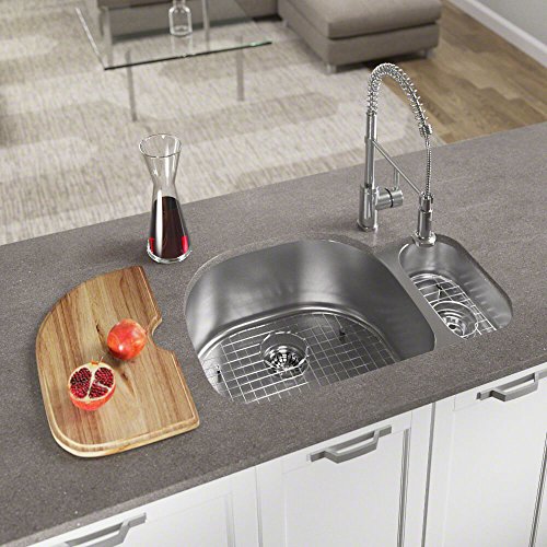 CONTEMPORARY STYLING -- The primary bowl is the trendy D-shape; front-aligned with the prep bowl to allow for a fashionable off-center faucet installation