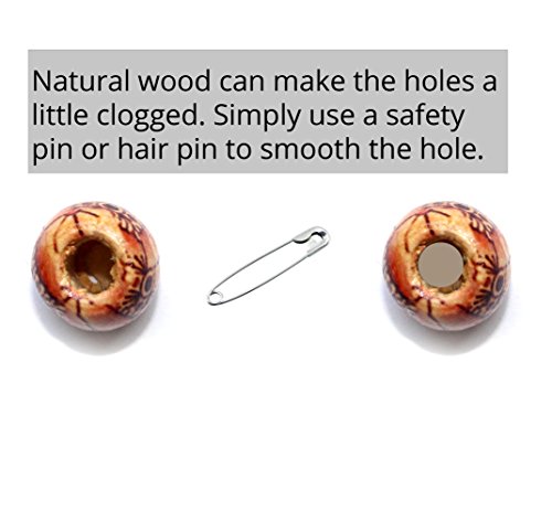 ASSORTMENT OF 300 PCS OF BEADS. Our whole sale bead pack contains 300 pieces of uniformly sized jewelry beads with the approximate diameter of 0.39 inches, so you have enough supply of wooden door beads to make your charms which are great for gift giving.