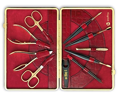 -. Title : 24K Gold-plated Womens Manicure Set in Red "Kroko" Leather Case. Made by Niegeloh in Germany