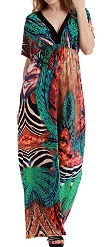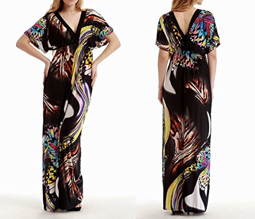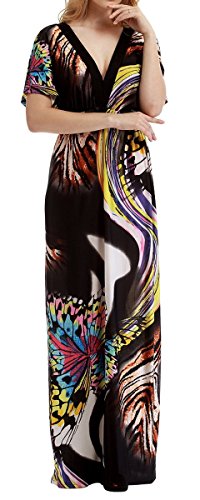 -. Feature : Not Padded - It would be a good "throw on" dress to go from the beach to dinner. / Exclusive Design - High-quality fabric, not thin or see through. The top is low-cut, but still very classy, doesn't show too much cleavage and the shoulder straps are wide enough to cover a bra strap. Elastic waist fits many sizes, gives you a great shape and create a illusion for stunning curves. / Long Enough - 54.6 inch full-length (for reference: Height 5'5", dress touches the ground;), perfect maxi dress for casual, party, summer beach occasion. / Easy to match - This Boho Maxi Dress can be paired with sandals for a casual look or dressed up with heels. / Please refer to the size measurement below before ordering.