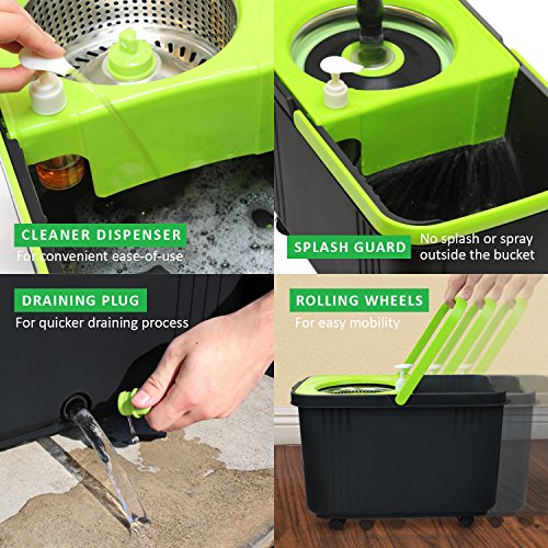 LINKYO Spin Mop Bucket System - Microfiber Mop with Easy Wringer Bucket