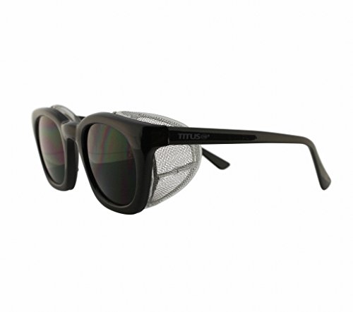 Protect Your Eyes – Titus G12 Retro Style Range Approved Safety Glasses, Stainless Steel Mesh Shielded Sides offer application to safety, shooting, and riding alike. UV400 protects against 99.9% of ultraviolet waves. Reinforced stems and optical grade polycarbonate lenses make for a impact resistant and shatterproof set of glasses. Exceeds ANSI Z87.1 Standard. 6.25" Length, 6" Width, 2" Height