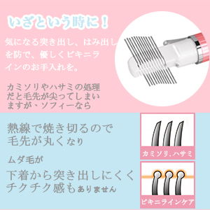 電熱を利用したヒートカッター方式だから、ハサミやシェーバーなどでお手入れしたときのように毛先が尖らず、球状にカットできるので、下着から毛先が突き出しにくく簡単できれいにムダ毛のお手入れができます。