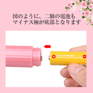 電池はマイナス極が底部に来るようにセットしてください。反対にセットされた場合、動作いたしません。