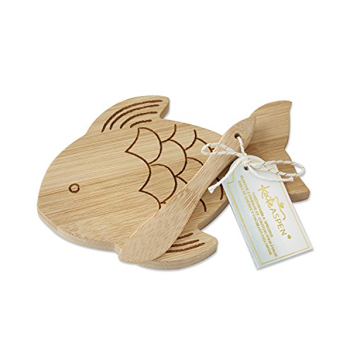 Kate Aspen 22086NA Fish Shaped Cheeseboard and Spreader, Brown