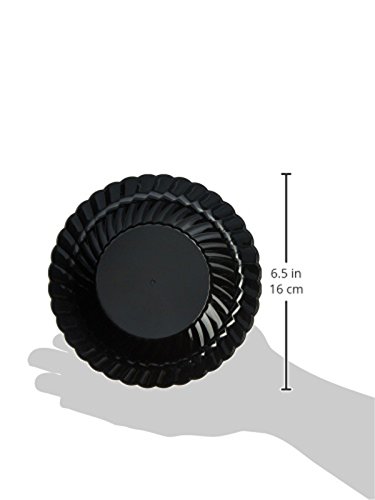 - 18-Count package of black plastic bowls with elegant fluted design