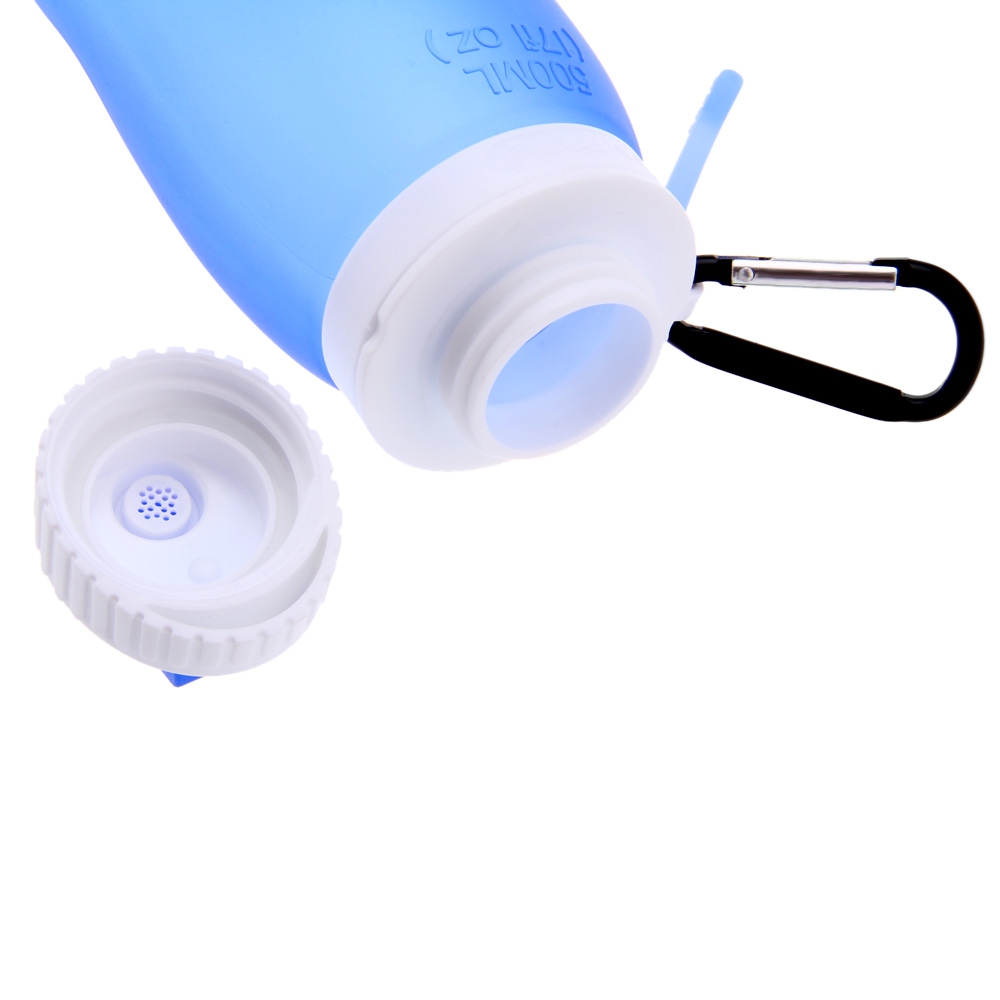 The bottle can roll up when it is empty. Once you have drunk all the water, simply roll it up and put it in your pocket or bag. It takes up very little space when folded. Hanging ring design you can hang in the backpack or pants waist