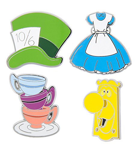 Product DescriptionThis Alice in Wonderland Disney pin set has 4 pins on one card. Mad Hatter's Hat, Alice's Dress, Teacup stack and the Doorknob.0