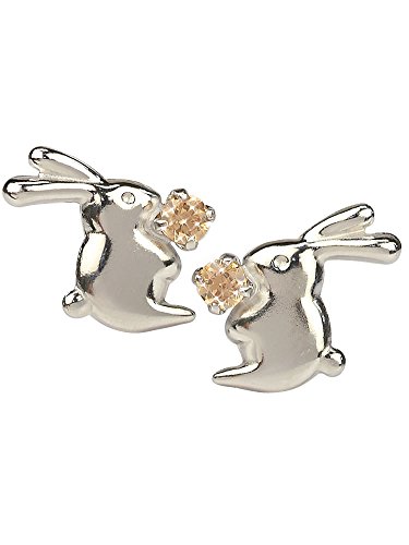 -. Title : [四葉のクローバー] 14金 シャンパンカラー ジルコニア CZ うさぎ ピアス 14k K14 ホワイトゴールド ウサギ レディース 女性 :Kk102