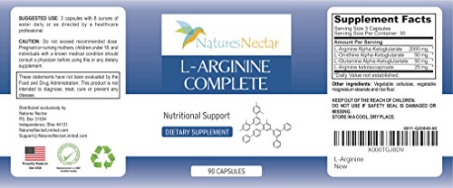 -. Feature : ✮ Potent Nitric Oxide Booster: L-Arginine Boosts Nitric Oxide For Faster Muscle Growth And Overall Better Workout Performance. Taken Alongside a Healthy Diet, L-Arginine Is Guaranteed to Boost Performance In the Gym And Increase Blood Flow For A Healthy Heart! / ✮ 100% MADE IN THE USA, 100% SATISFACTION GUARANTEED - We mix, fill, pack and label all of our products in the United States, leveraging FDA approved facilities that live up to the highest standards of GMP ("Good Manufacturing Practices") compliance. Our products are also 100% satisfaction guaranteed; if you don't like the product, simply return it via Amazon's no-hassle return process and we'll be glad to give you a full refund. We stand behind our products because we believe in them. / ✮ #1 Purest Pharmaceutical Grade L-Arginine On Amazon: Because Natures Nectar Focuses On Potency, We Source Our Arginine From A Top NSF Certified Supplier. This Assures the Purest And Most Potent Ingredients For Peak Performance. / ✮ Increase Energy Production And Blood Flow For The Best Muscle Pump You've Ever Had. When You Increase Nitric Oxide In the Body, You Initiate Increases In Blood Flow To The Muscles Giving You High Level Muscle Pumps Every time. / ✮ NATURAL HERBS, VEGAN CAPSULES, NO SYNTHETIC FILLERS - Our capsules are made from vegetable cellulose. That's it. No synthetics, no preservatives. We take herbs and put them into vegan capsules with absolutely no synthetic ingredients. Rice flour is added to make sure the ingredients mix evenly and safely.